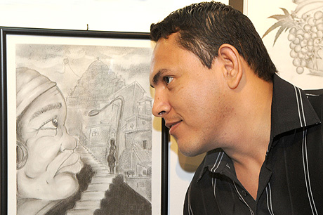 Marco Antônio, funcionário do CEdserj, apresenta os trabalhos “Um ponto de vista 1 e