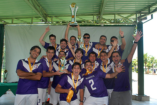 Alegria da equipe do Joiúdos ao receber o troféu campeão