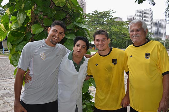 A enfermeira Cristiane com a família campeã: Thiago, Vinicius e José Almir